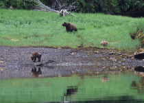 The Khutzeymateen Inlet is one of British Columbia’s most northern glacial fjords, with characteristic steep cliffs, thick forests and rich estuary ecosystems. The Khutzeymateen Valley is Canada’s only grizzly bear sanctuary and is home to British Columbia’s most important coastal bear population.